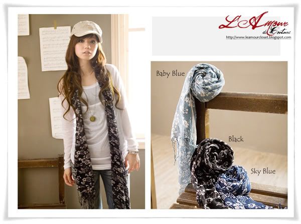 #2381 Flora Fringed Scarf (IN-STOCK!: 3pc BLACK ONLY)• A country flora print is